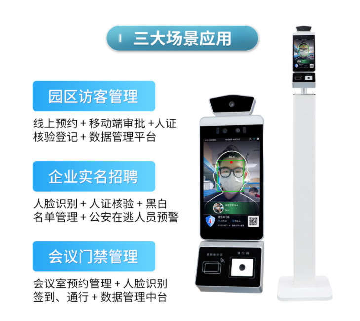 数字哨兵的升级从三方面拓展,充分满足不同类型的用户的不同需求。访客管理方面:顺利获得线上预约+移动端审批+人证核验登记+数据管理平台的模式,充分解决了访客拜访的问题。企业招聘方面:人脸识别+人证核验+黑白名单管理+公安在逃人员预警;在实名方面保障每个面试人员的实名性。不仅如此绿色版888集团还推出了新的会议门禁套餐,顺利获得会议室预约管理+人脸识别签到、通行+数据管理中台,充分解决员工的会议考勤问题。
